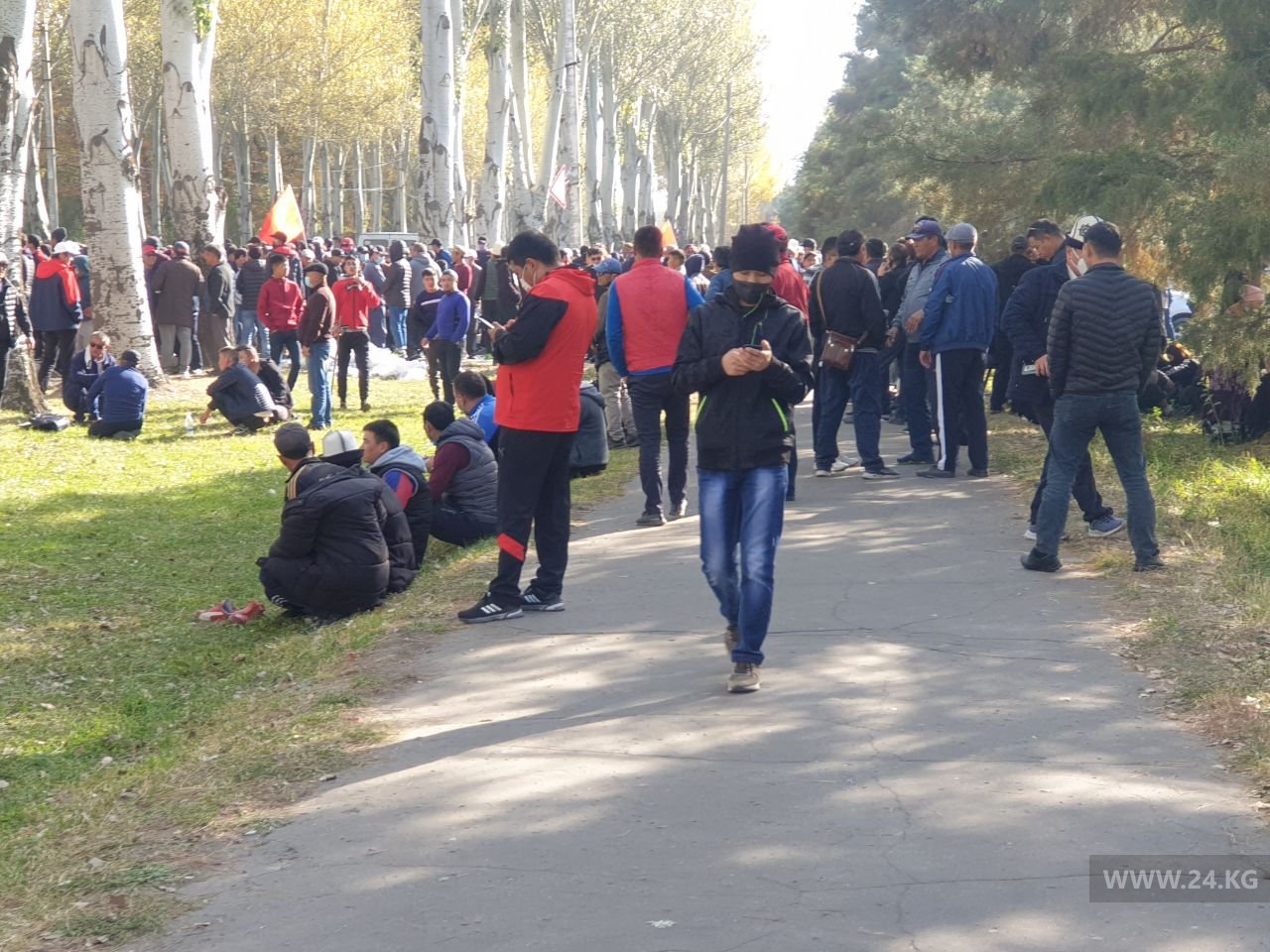 В Бишкеке около гостиницы «Иссык-Куль» проходит митинг сторонников премьер-министра Садыра Жапарова.