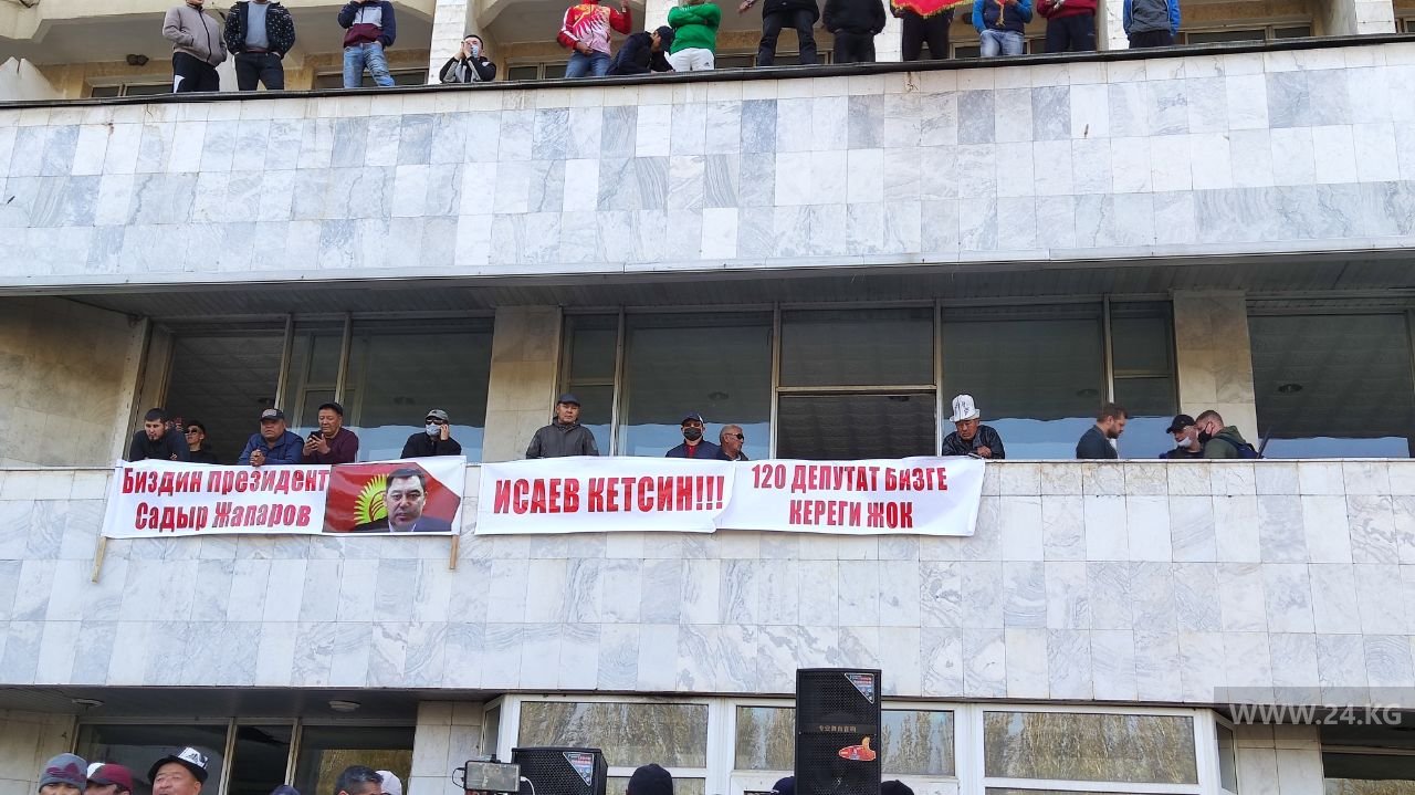 Возле гостиницы «Иссык-Куль» продолжается митинг сторонников Садыра Жапарова. Собралось примерно 1 тысяча 200 человек. Теперь они требуют роспуска Жогорку Кенеша и отставки спикера Каната Исаева.