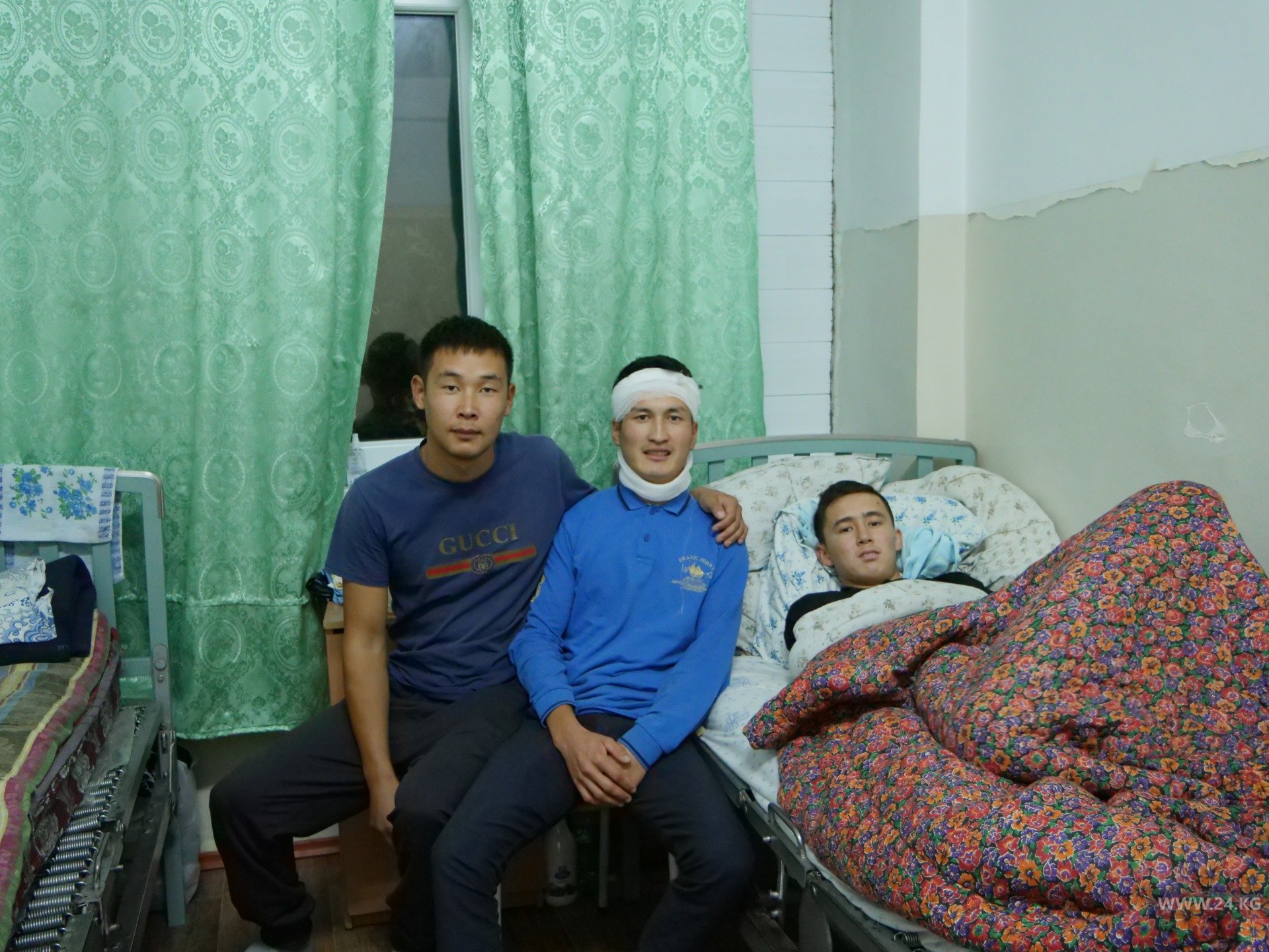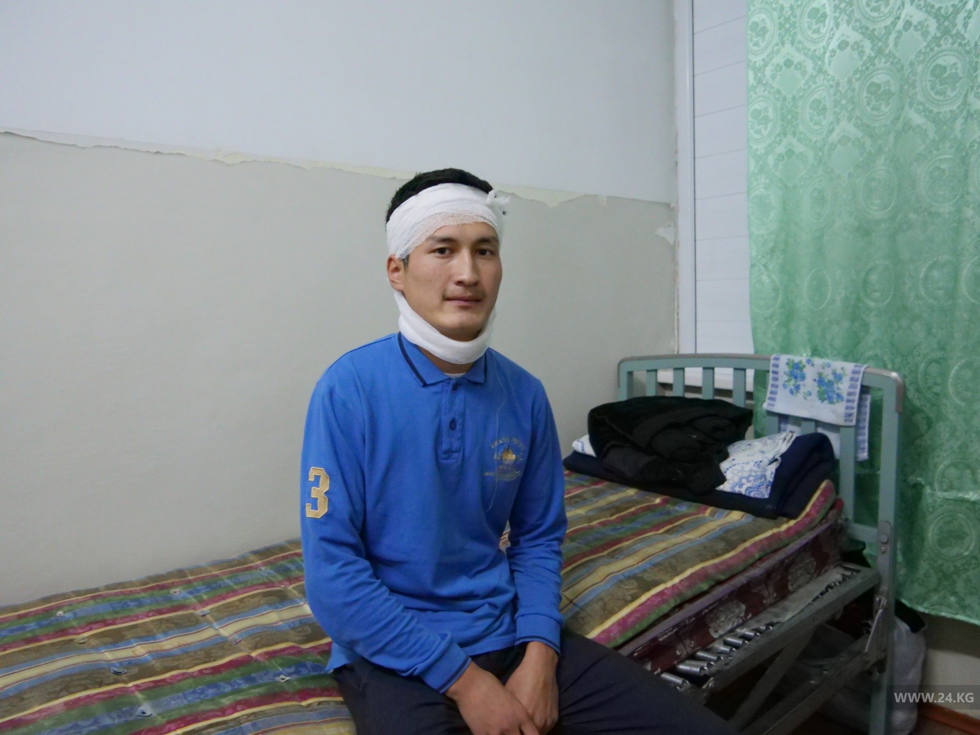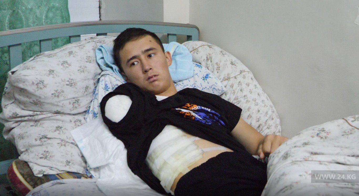 В соседней палате находится еще один участник тех событий — 26-летний Насирдин Мамыров. Он тоже получил травму на площади.