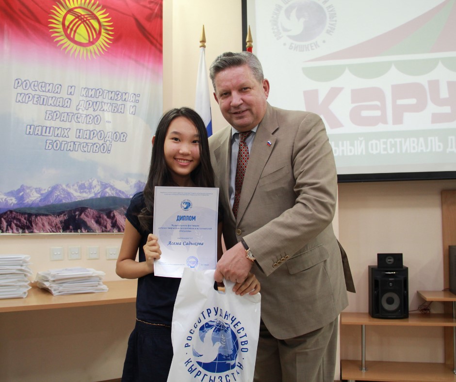 Участники фестиваля получили дипломы и памятные подарки. Дипломы и призы также вручили участникам телевизионного конкурса «Во весь голос», педагоги и наставники которого заслуженный деятель культуры Кыргызстана Рафаил Сарлыков и заслуженная артистка Жылдыз Осмоналиева.