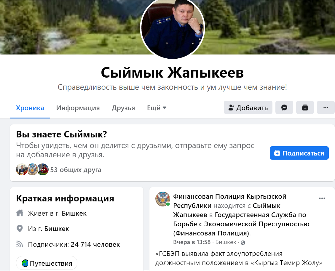 В Facebook на главу Финпола Сыймыка Жапыкеева подписаны 24 тысячи 714 человек.