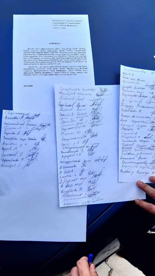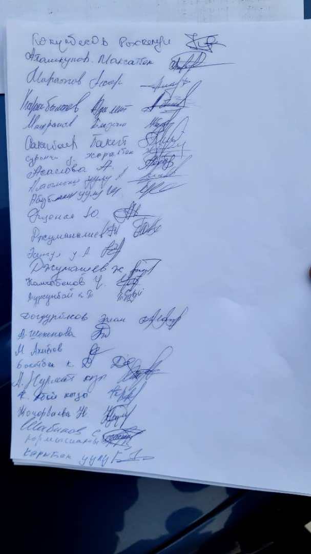 Журналист также отметил, что если Садыр Жапаров не решит их вопрос, они будут вынуждены обратиться в Конституционную палату Верховного суда, чтобы отменить указ о назначении Шатмановой. К своему посту Сакыбаев приложил снимки с подписями коллег, несогласных с кандидатурой нового директора.