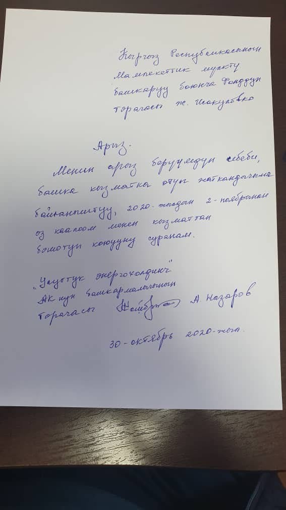Председатель ОАО «Национальный энергохолдинг» Айтмамат Назаров подал в отставку. Об этом он сообщил на своей странице в Facebook.