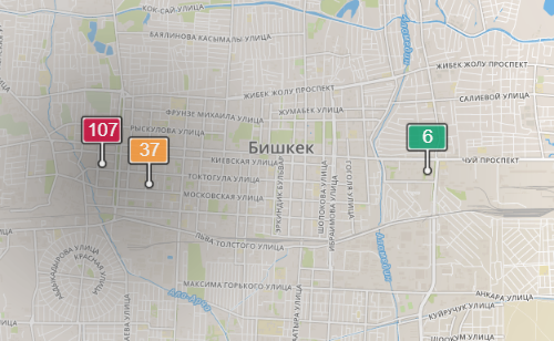 - в районе улиц Бейшеналиевой/Токтогула. Уровень загрязнения превышен в 1,94 раза: PM2.5 среднесуточный — 68 мкг/м³, на момент измерения — 107 мкг/м³;