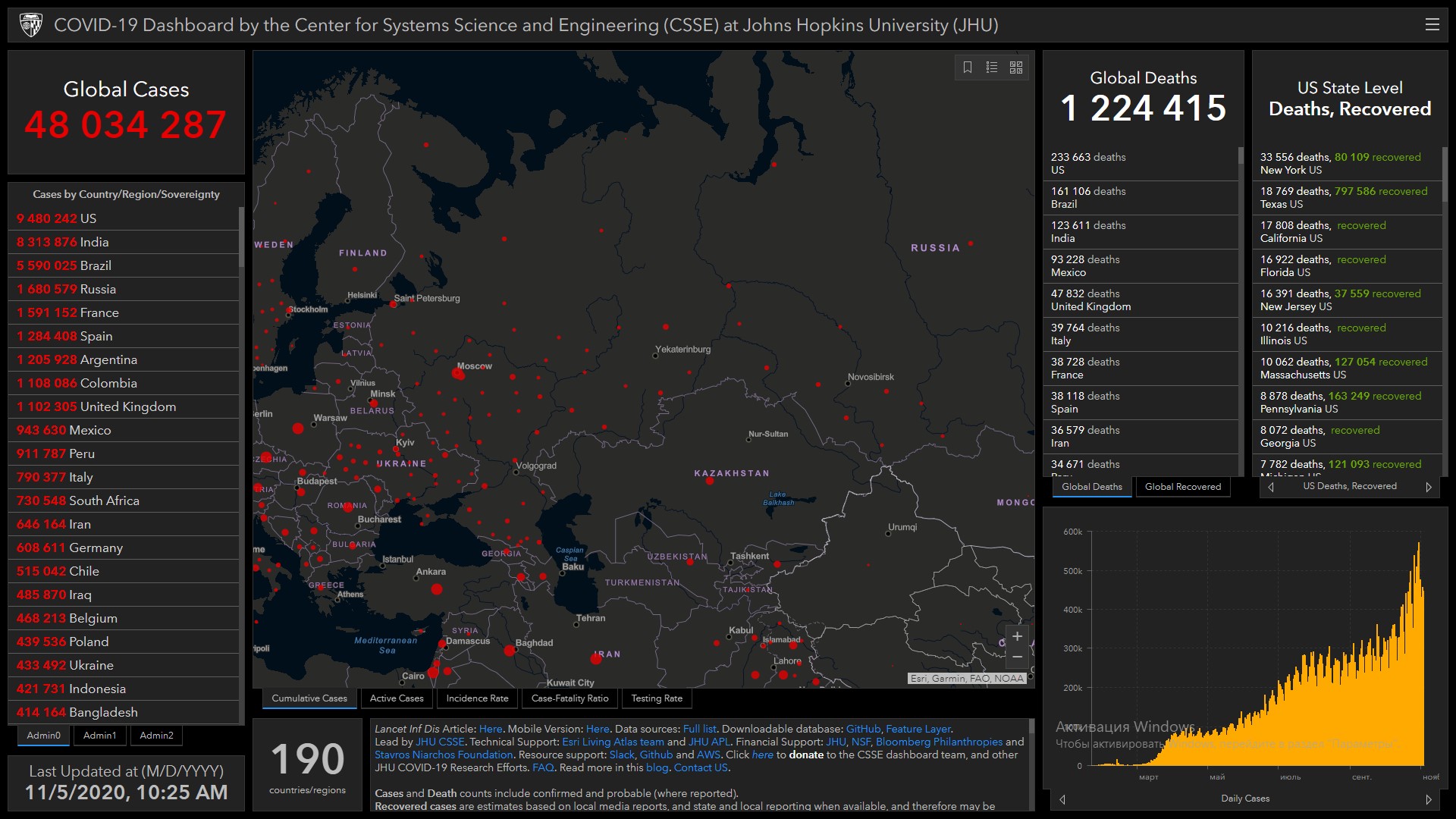 COVID-19. В мире заразились 48 миллионов, умерли более 1,2 миллиона человек