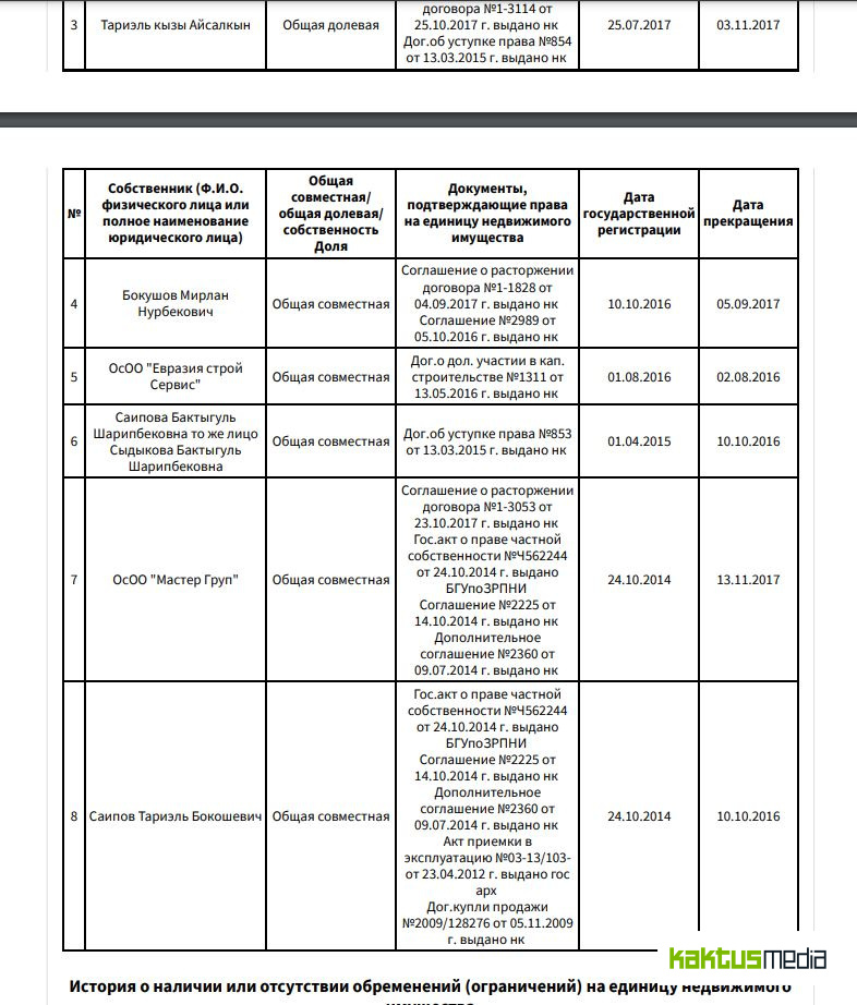 По данным журналистов, на Асыла Абылгазиева оформлены земельный участок на улице Ахунбаева, 165. Ему, стройкомпании «Залкар строй инжиниринг» и еще одному физическому лицу принадлежат все квартиры и нежилые помещения.