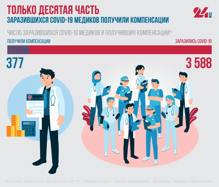 Отсутствие защиты и финансовой поддержки может привести к тому, что в разгар пандемии кыргызстанцев не спасут даже новые больницы. В них некому будет лечить. Ведь под ударом вновь оказались медики. Наш анализ показал, что за последний месяц количество заражений выросло почти в три раза. Подробнее в материале «Вторая волна COVID-19. Кыргызстанцев скоро некому будет лечить».