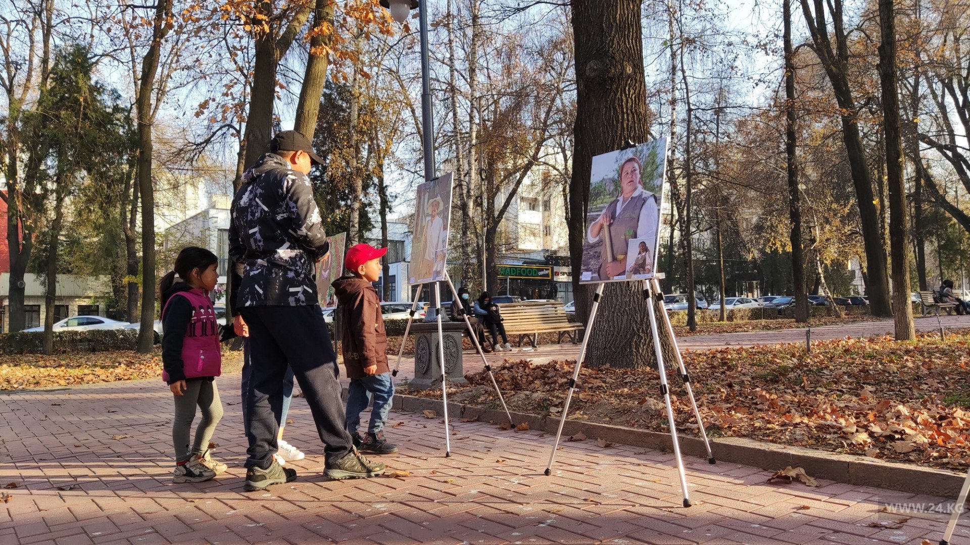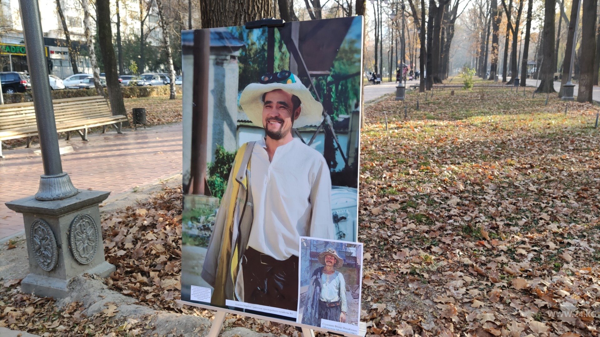 В Бишкеке на бульваре Эркиндик состоялась выставка картин, на которых сотрудники Бишкекзеленхоза предстали в образах известных персонажей работ отечественных художников.