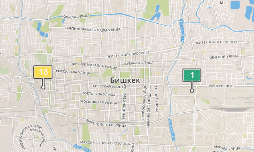 - в районе улиц Бейшеналиевой/Токтогула. Уровень загрязнения превышен в 1,34 раза: PM2.5 среднесуточный — 47 мкг/м³, на момент измерения — 18 мкг/м³;