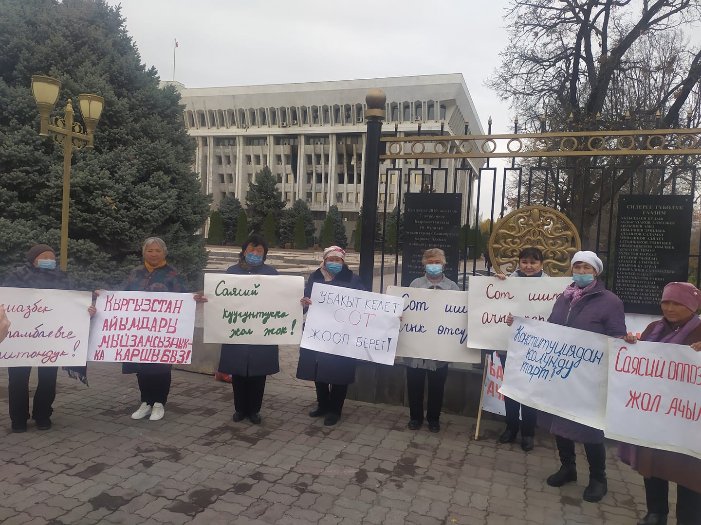 Четыре женщины продолжают голодовку с 7 ноября. Сегодня к ним пришли сотрудники аппарата президента и пообещали, что исполняющий обязанности главы государства премьер-министр Садыр Жапаров примет протестующих и выслушает их требования.