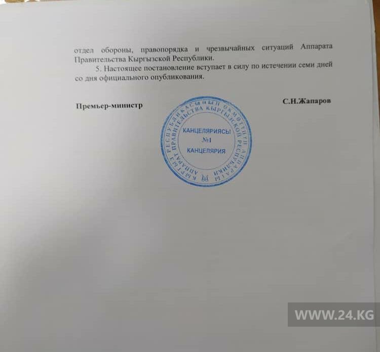 Исполняющий обязанности президента премьер-министр Садыр Жапаров подписал постановление о создании пограничной службы Госкомитета национальной безопасности. Об этом 24-kg.com сообщили собственные источники.