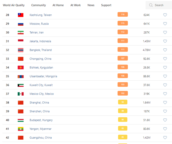 В рейтинге крупнейших городов мира по качеству воздуха World Air Quality на 9.30 Бишкек опустился на 34-е место.