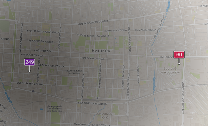 - в районе улиц Московской/Уметалиева. Уровень загрязнения превышен в 6,6 раза: PM2.5 среднесуточный — 231 мкг/м³, на момент измерения — 249 мкг/м³;