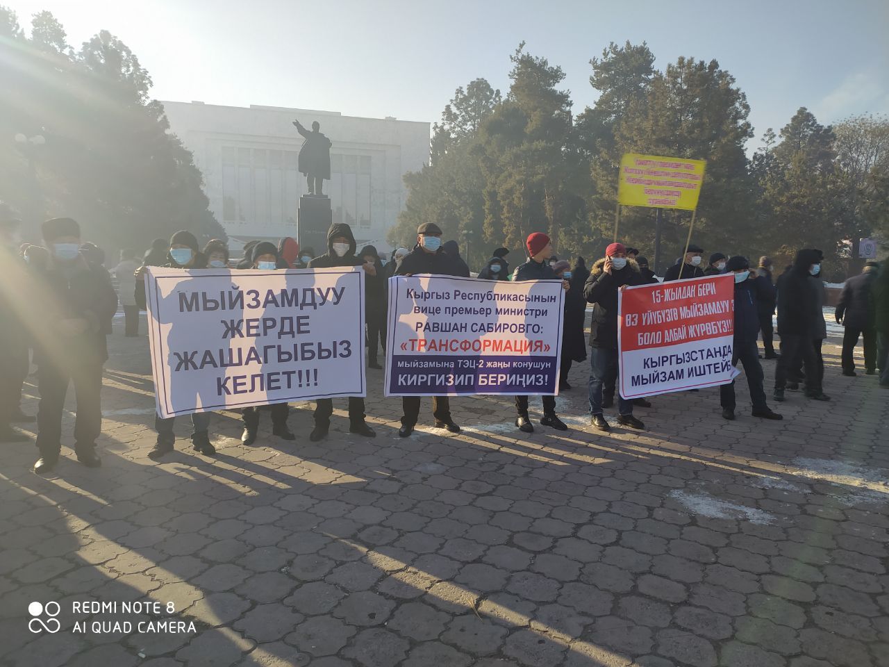 Протестующие обращаются к и. о. президента Таланту Мамытову и вице-премьер-министру Равшану Сабирову.