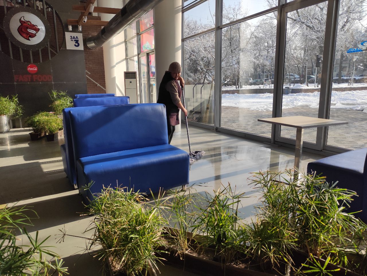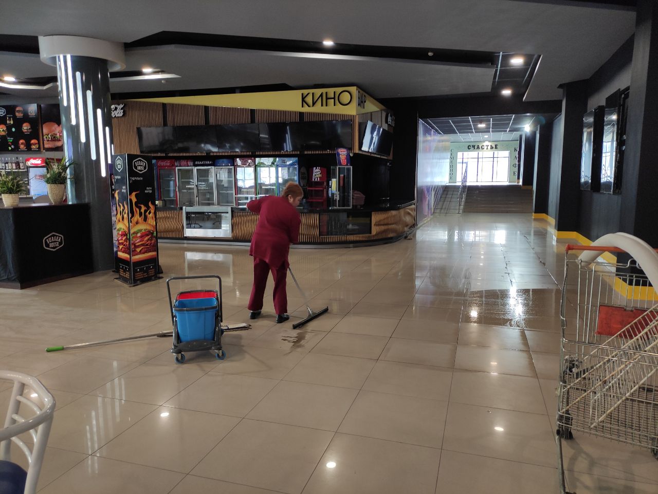 Сеть кинотеатров «Синематика» сегодня проводит финальную генеральную уборку. Каждый сотрудник заведения приводит в порядок свою зону.