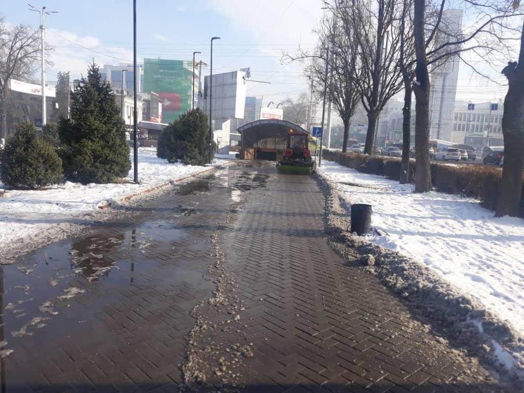 Скользкие тротуары в центре Бишкека почистили. Об этом 24-kg.com сообщили в пресс-службе мэрии столицы.