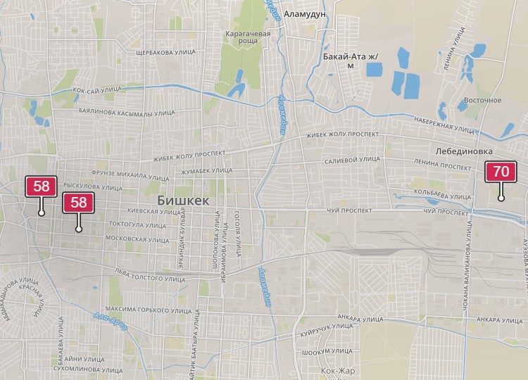 - в районе улиц Бейшеналиевой/Токтогула. Уровень загрязнения превышен в 3,08 раза: PM2.5 среднесуточный — 108 мкг/м³, на момент измерения — 58 мкг/м³;