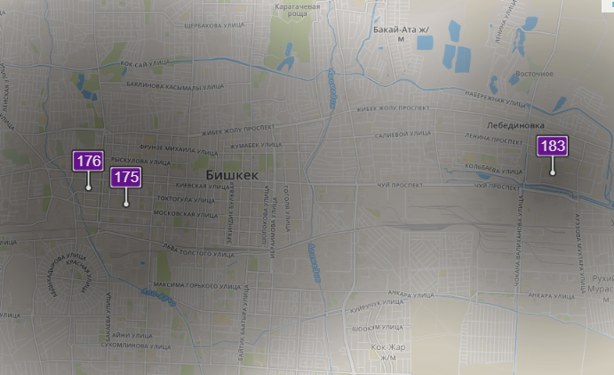 - в районе улиц Бейшеналиевой/Токтогула. Уровень загрязнения превышен в 4,31 раза: PM2.5 среднесуточный — 151 мкг/м³, на момент измерения — 176 мкг/м³;