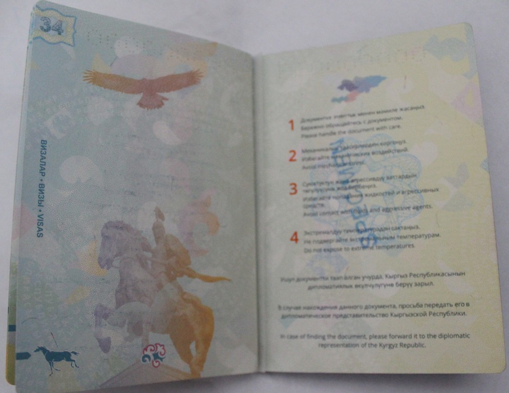 На внутренней стороне задней обложки общегражданского паспорта размещено небольшое изображение административно-территориальной карты Кыргызстана.