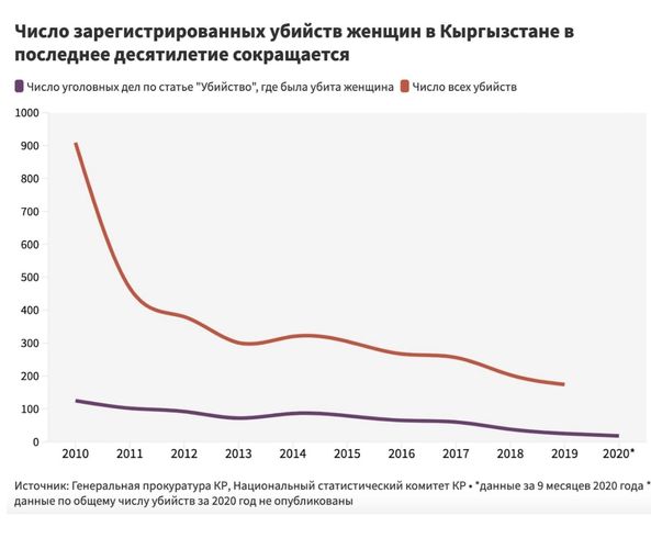 По данным Генеральной прокуратуры, с 2010 года по сентябрь 2020-го возбуждено 762 уголовных дела по статье «Убийство», где жертвой стала женщина.