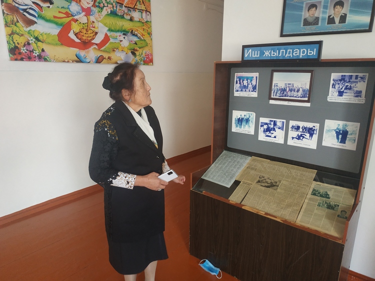 Фото Юрия Кузьминых. Майрамкуль Атаева в школьном музее, посвященном ее отцу