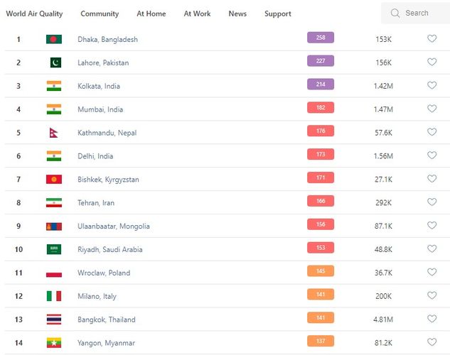 В 8.30 статус города отмечен как «нездоровый» (Unhealthy). Индекс качества воздуха, по данным сайта, составляет 171 (AQI).