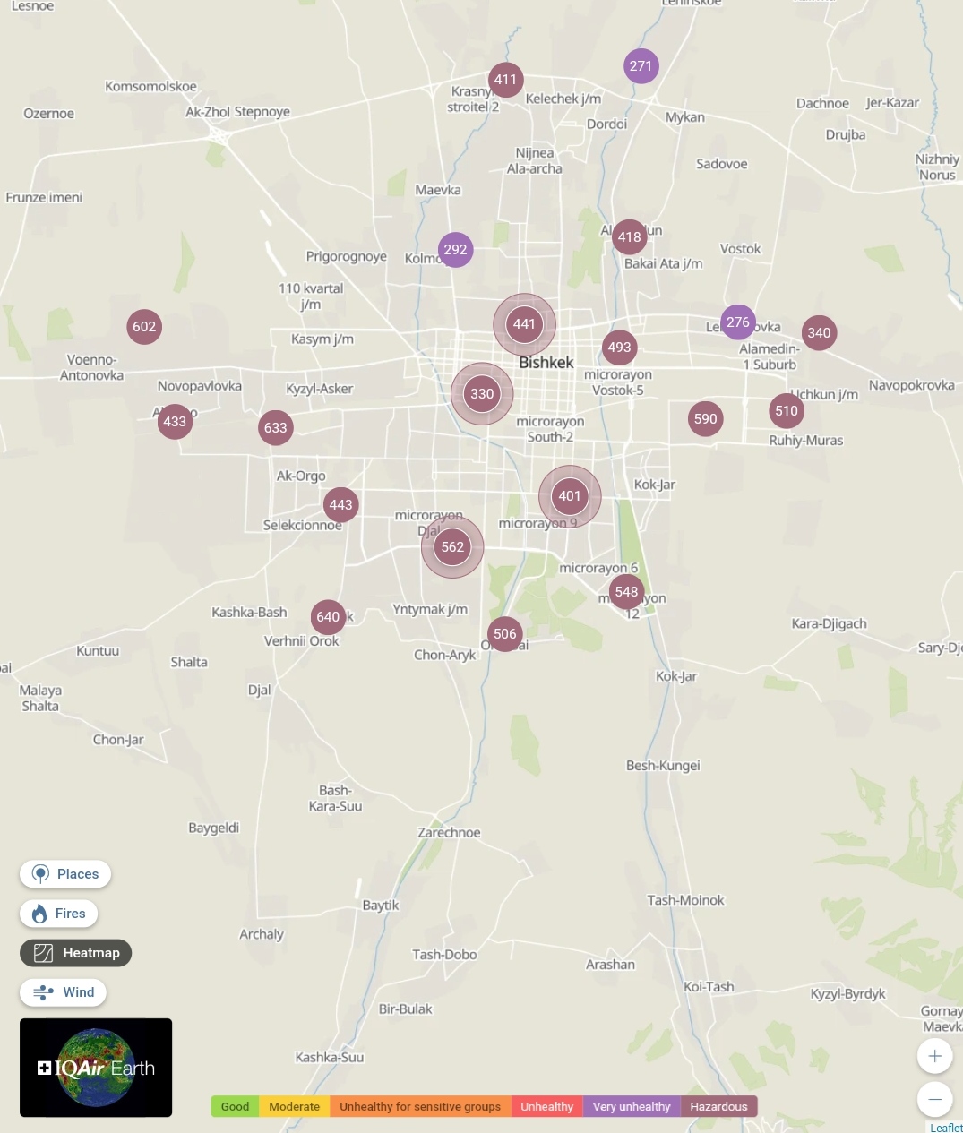 В рейтинге крупнейших городов мира по качеству воздуха World Air Quality Бишкек опять находится на первом месте.