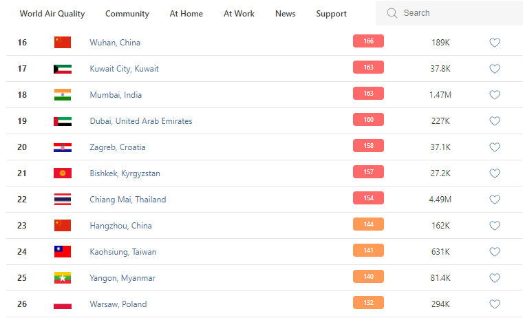 В 9.30 статус города отмечен как «нездоровый» (Unhealthy). Индекс качества воздуха, по данным сайта, составляет 157 (AQI).