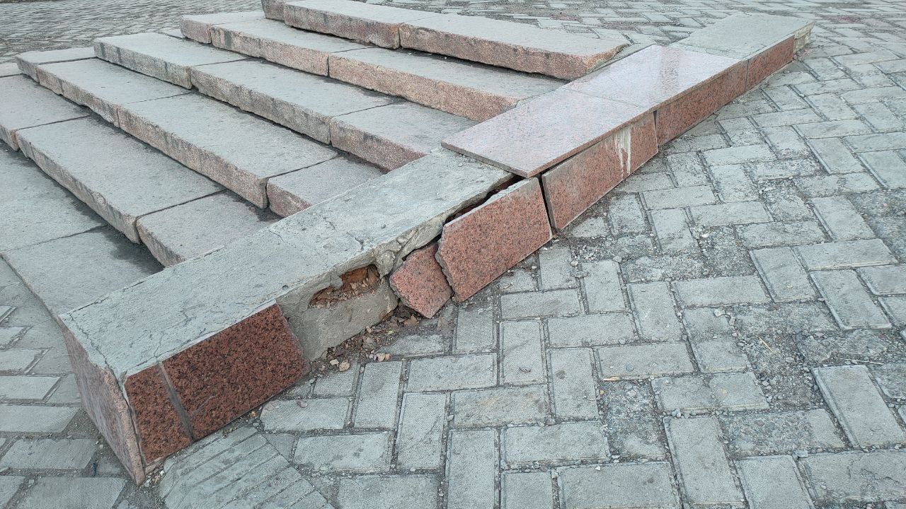 Что говорить, когда возле самой мэрии пешеходная зона на улице Киевской выглядит ужасно — разбитый асфальт, глубокие ямы, страшные арычные системы, по которым бегают крысы. В некоторых местах, по всей видимости, растаскали брусчатку, а возможно, там ее и не было вообще. Бордюры сломаны и разбросаны на газонах.