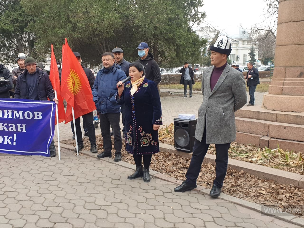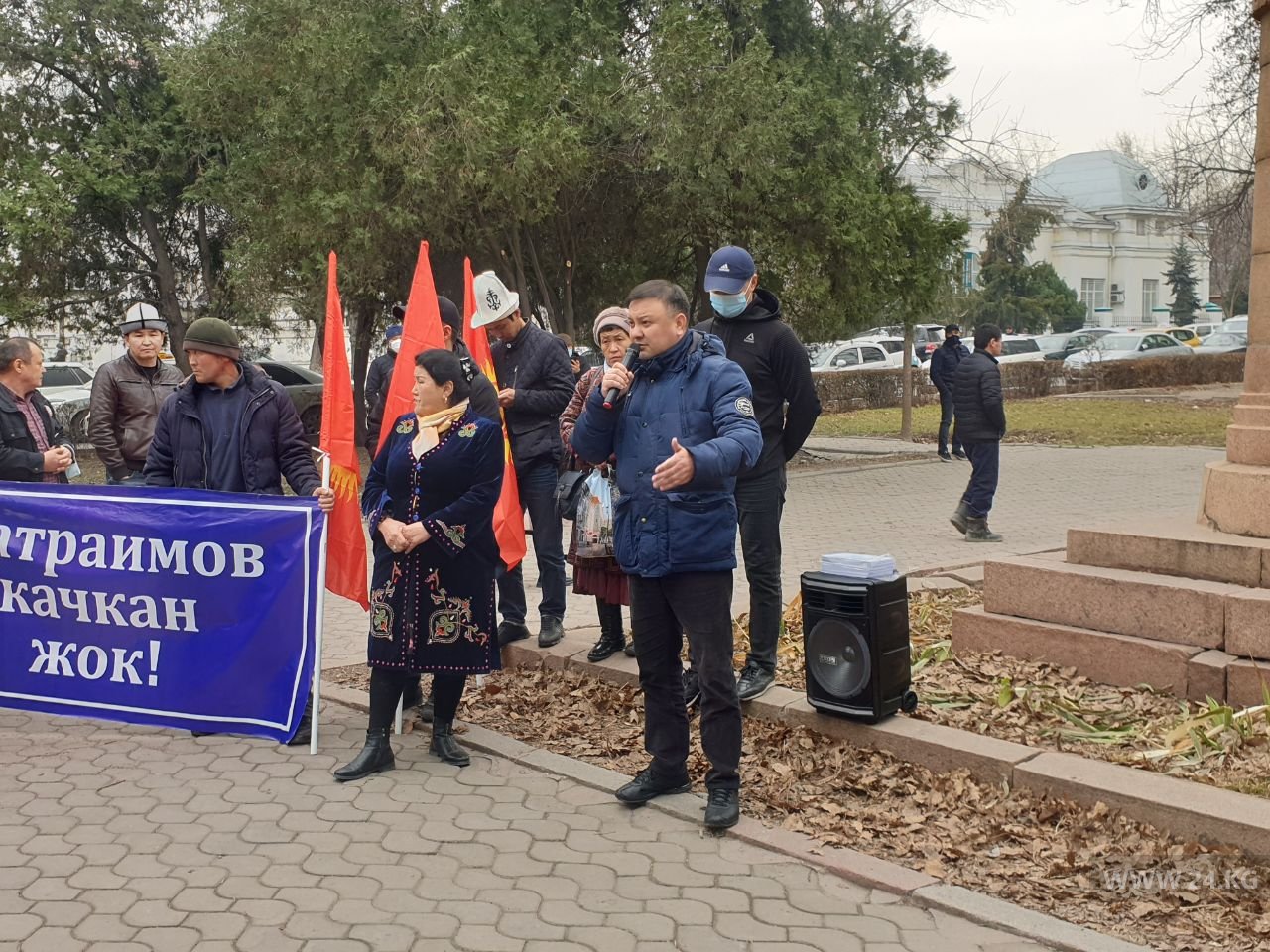 Модератором митинга выступает исполнительный директор спортивного клуба ЕRЕМ и ближайший соратник Матраимова Шайлообек Атазов. Он в 2015 году баллотировался в парламент от «Ата Мекена», в октябре 2020-го шел в списке «Мекеним Кыргызстан».