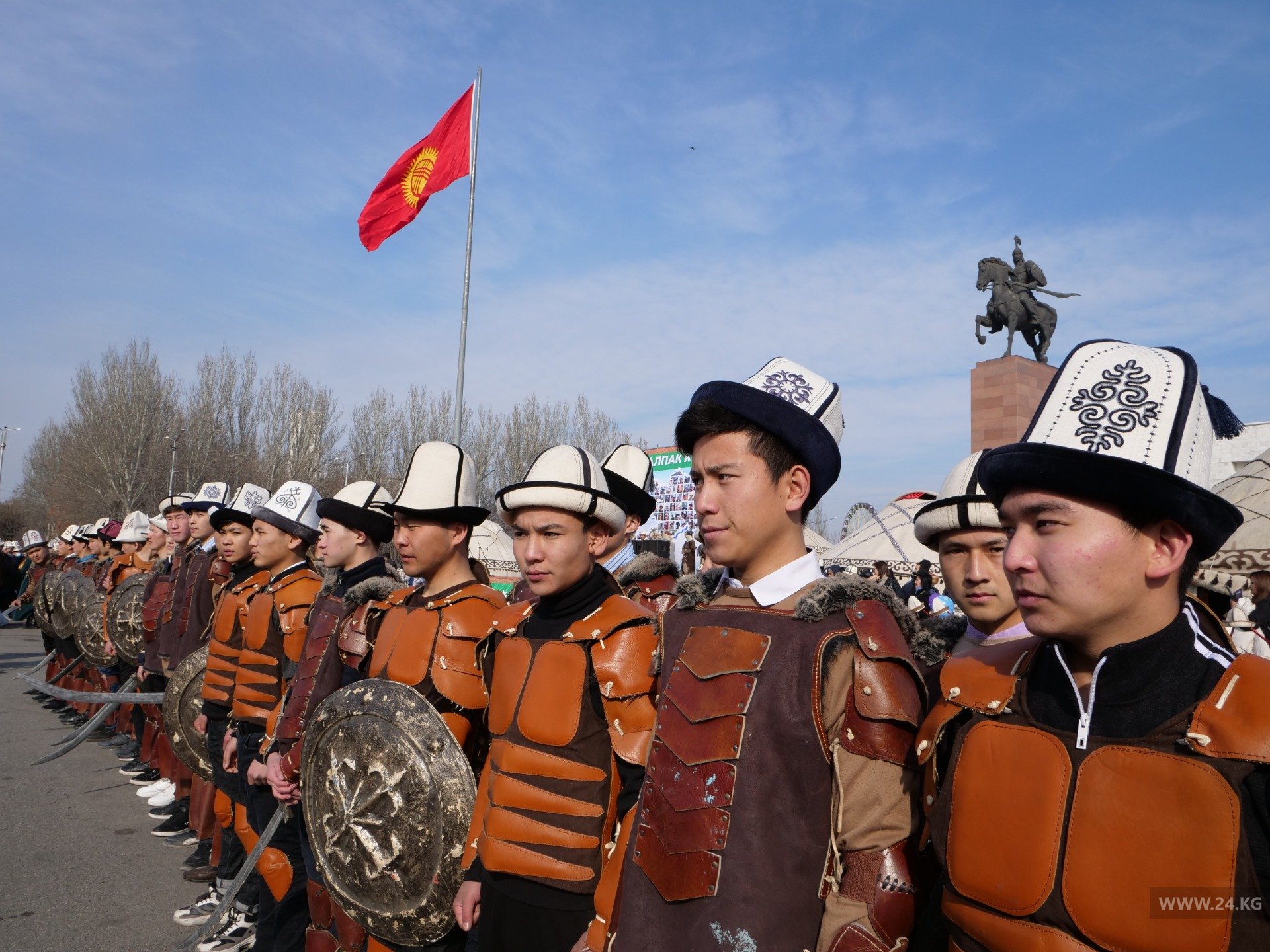В параде приняли участие деятели культуры, представители федераций салбуурун и кок-бору, депутаты Жогорку Кенеша, горожане. Шествие завершилось выставкой ак калпака. Чтобы плохая погода не помешала насладиться зрелищем, праздник отметили досрочно — на день раньше.