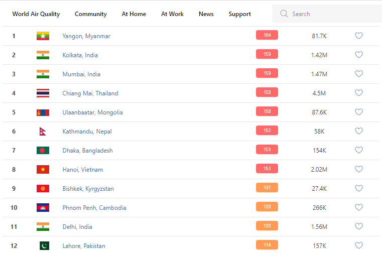 В рейтинге крупнейших городов мира по качеству воздуха World Air Quality Бишкек поднялся на 9-е место.