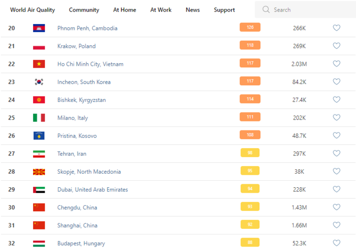 В 9.30 статус города отмечен как «нездоровый для чувствительных групп». Индекс качества воздуха, по данным сайта, составляет 114 (AQI).