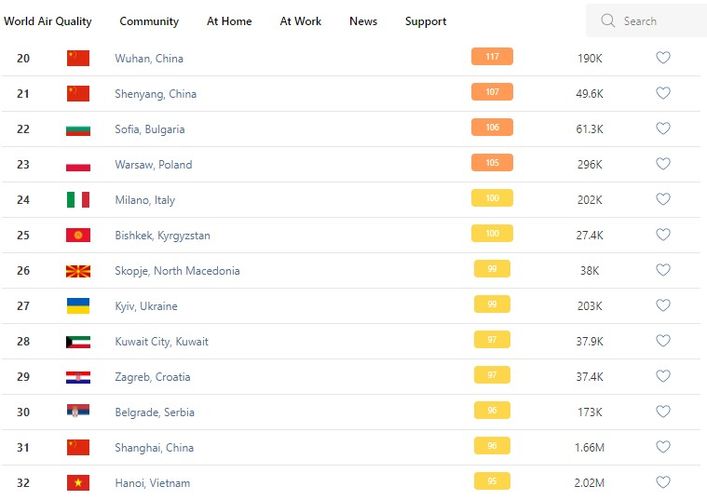 В рейтинге крупнейших городов мира по качеству воздуха World Air Quality Бишкек опустился на 25-е место.