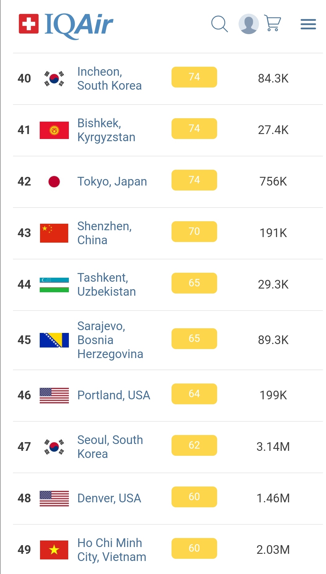 В 19.30 статус города отмечен как «умеренный». Индекс качества воздуха, по данным сайта, составляет 74 (AQI).