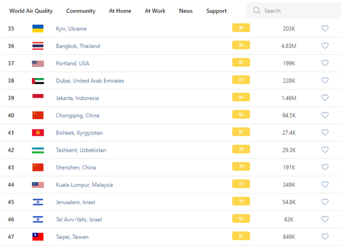 В 9.30 статус города отмечен как «нездоровый для чувствительых групп». Индекс качества воздуха, по данным сайта, составляет 82 (AQI).
