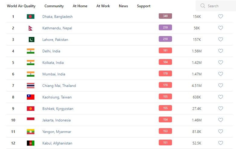 В рейтинге крупнейших городов мира по качеству воздуха World Air Quality Бишкек поднялся на 9-е место.