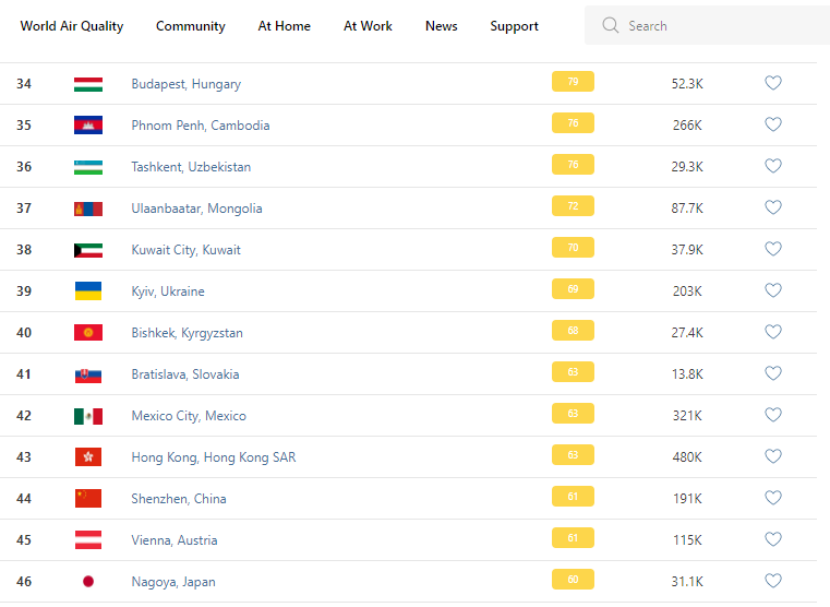 В рейтинге крупнейших городов мира по качеству воздуха World Air Quality Бишкек поднялся на 40-е место.
