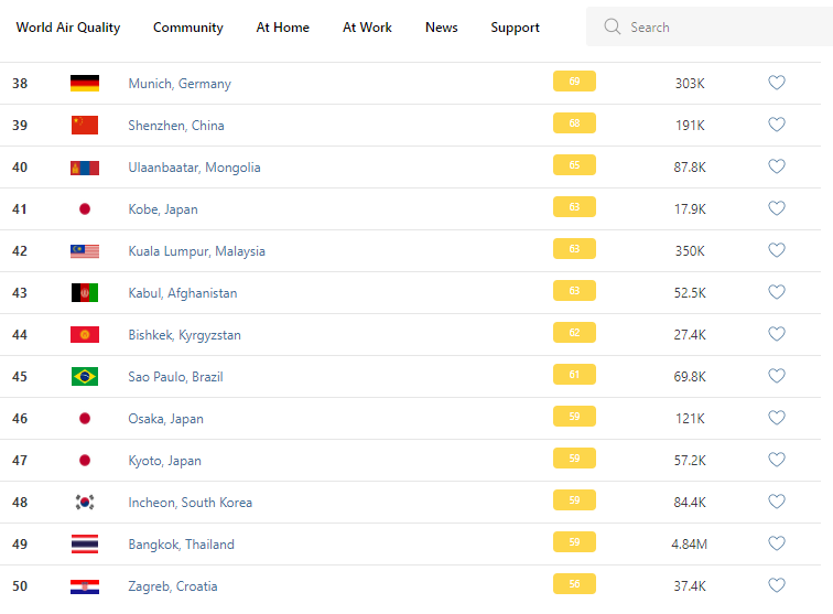 В рейтинге крупнейших городов мира по качеству воздуха World Air Quality Бишкек поднялся на 44-е место.