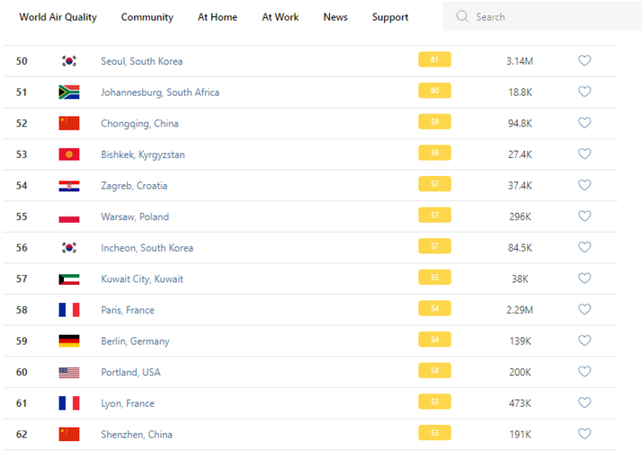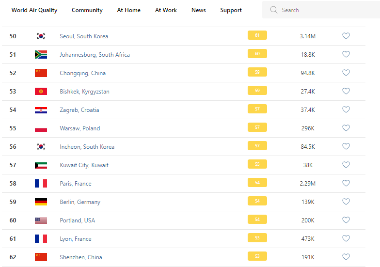 В рейтинге крупнейших городов мира по качеству воздуха World Air Quality Бишкек опустился на 53-е место.
