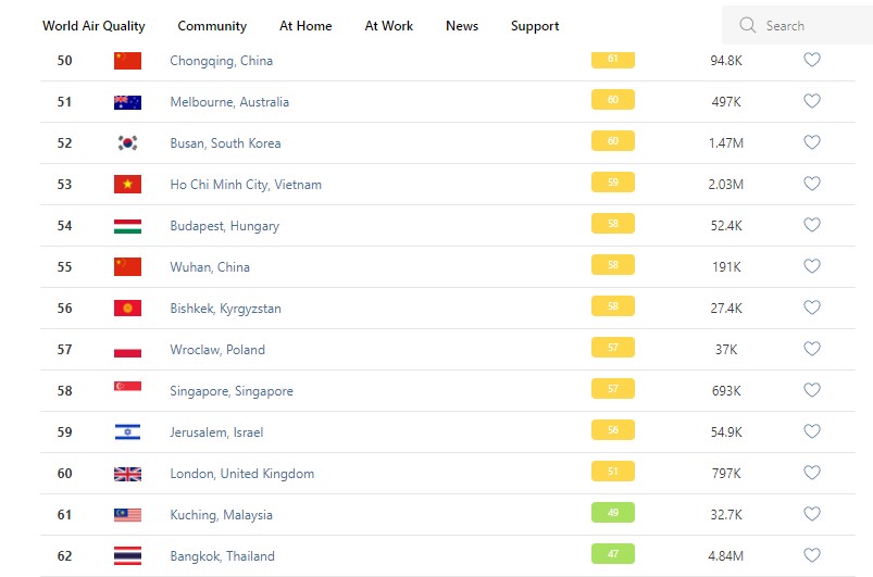В рейтинге крупнейших городов мира по качеству воздуха World Air Quality Бишкек опустился на 56-е место.