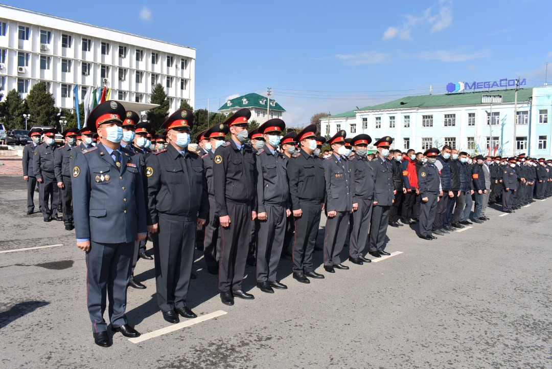 В гарнизонном разводе приняли участие руководство и личный состав УВД Оша и УВД Ошской области, патрульная милиция и бойцы спецназа «Шумкар».