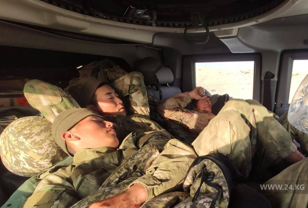 В социальных сетях опубликовано фото военнослужащих Кыргызстана, уснувших в машине после боя во время приграничного конфликта.