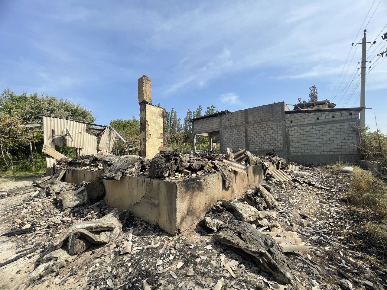 Это фото сделано оператором кыргызстанского портала Kloop Хамидулло Узаковым 2 мая в селе Максат Лейлекского района Баткенской области. Дом принадлежал кыргызстанцу Назимбаю. Жилище сожгли в ночь на 30 апреля.