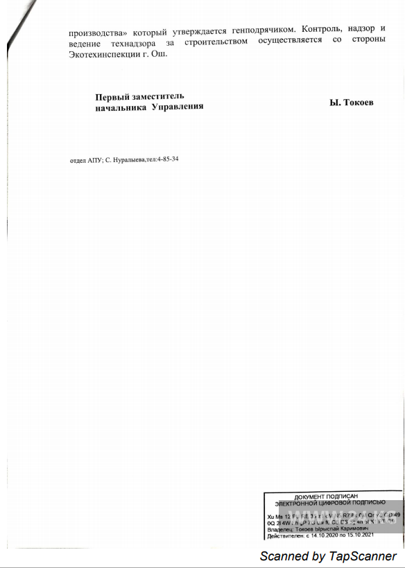 Согласно нормам, положительное заключение госэкспертизы рабочего проекта является основанием для начала строительных работ. Но его согласование не производилось, то есть второй этап получения разрешительных документов со стороны компании «Кыргыз Каганат» не пройден.