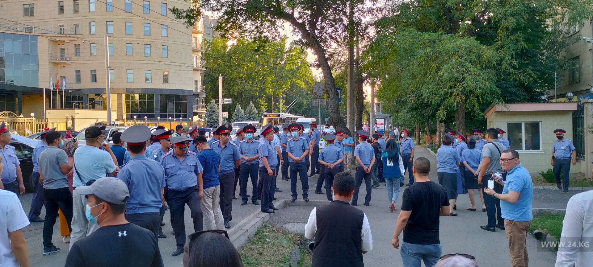 Сейчас возле здания дипмиссии собралось около 20 сотрудников правоохранительных органов для обеспечения общественного порядка. Они организовали живой коридор, чтобы сотрудники посольства могли выехать из здания.