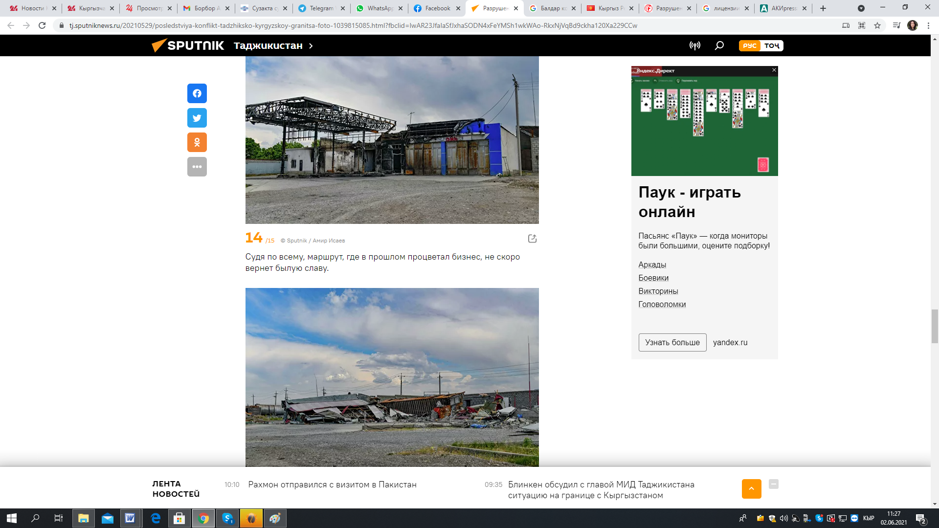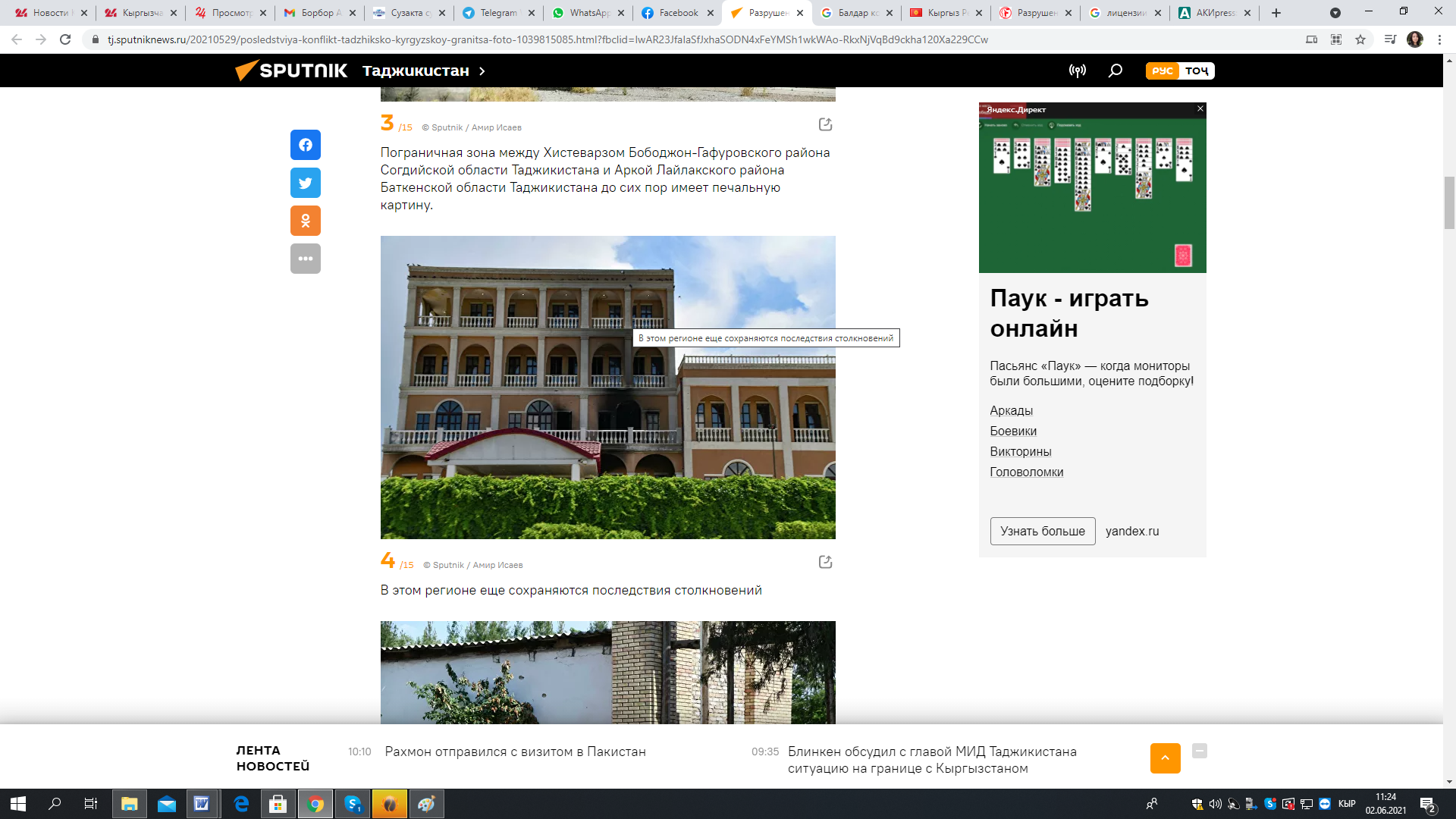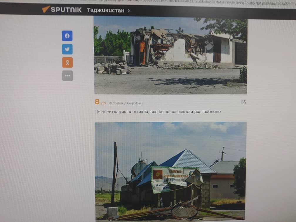 29 мая ресурс «Спутник-Таджикистан» опубликовал материал «Разрушенный Хистеварз: последствия конфликта на таджикско-кыргызской границе на фото».
