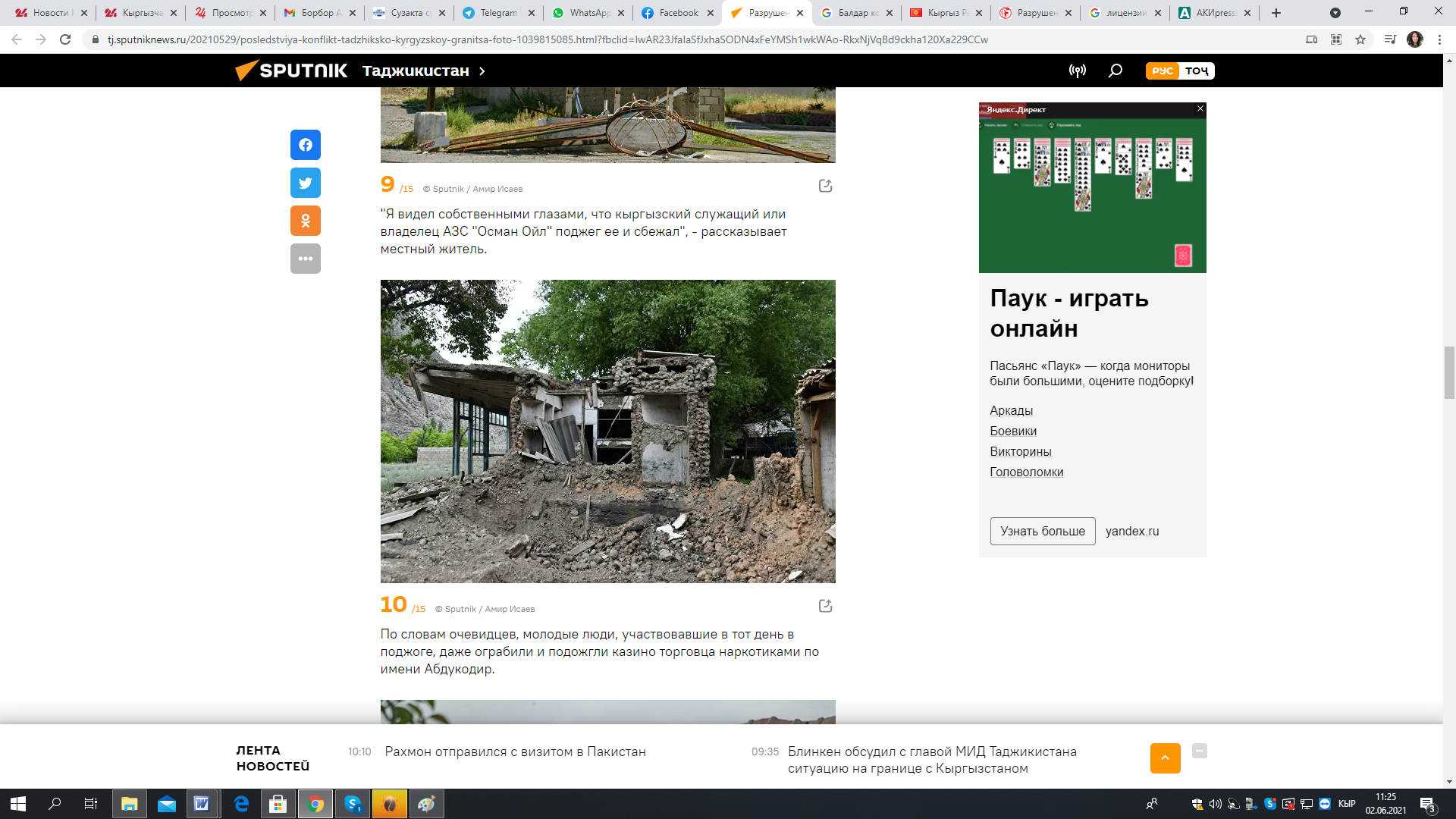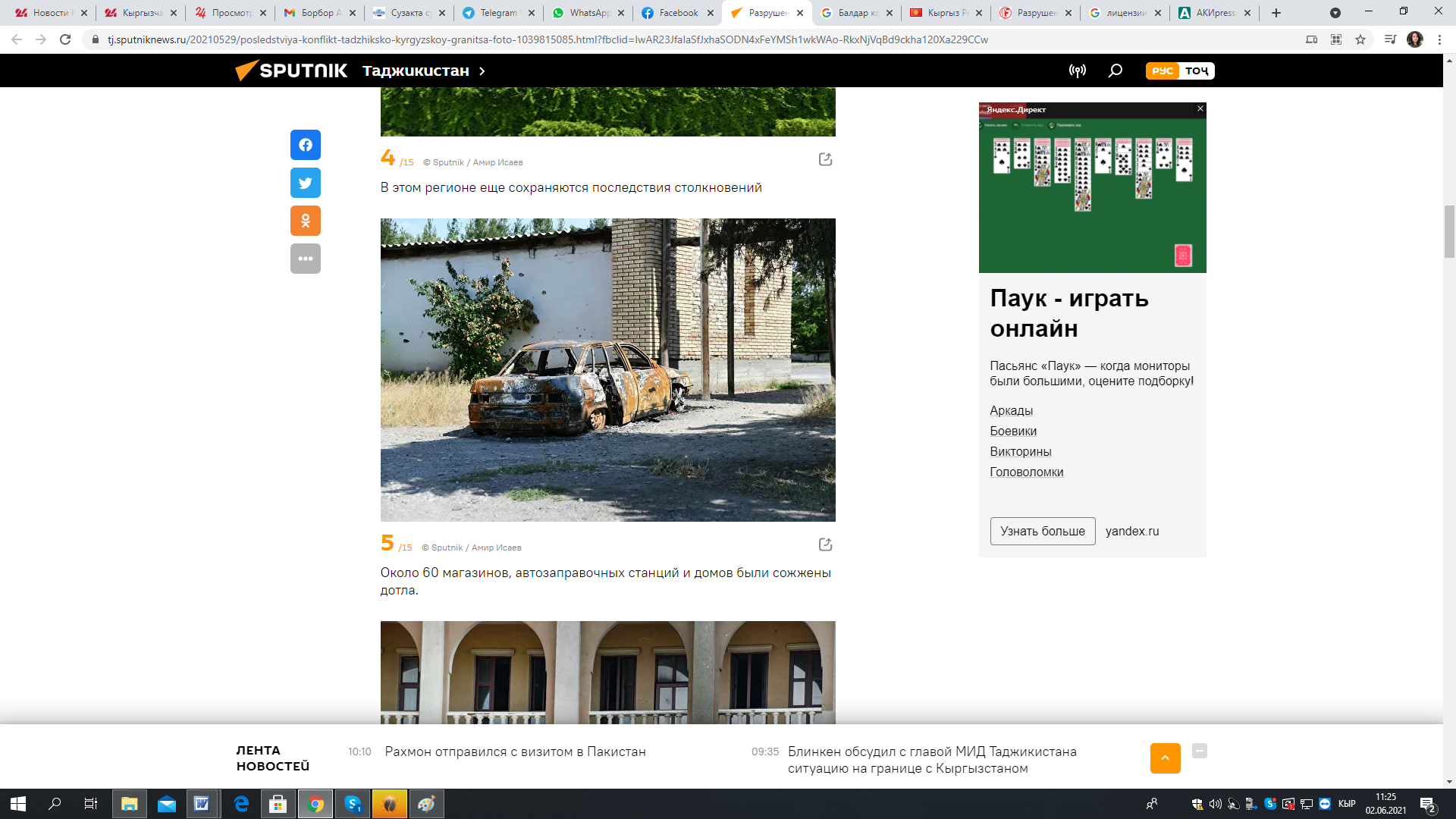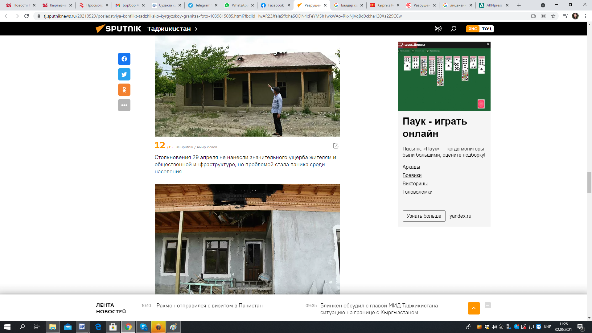 29 мая ресурс «Спутник-Таджикистан» опубликовал материал «Разрушенный Хистеварз: последствия конфликта на таджикско-кыргызской границе на фото».