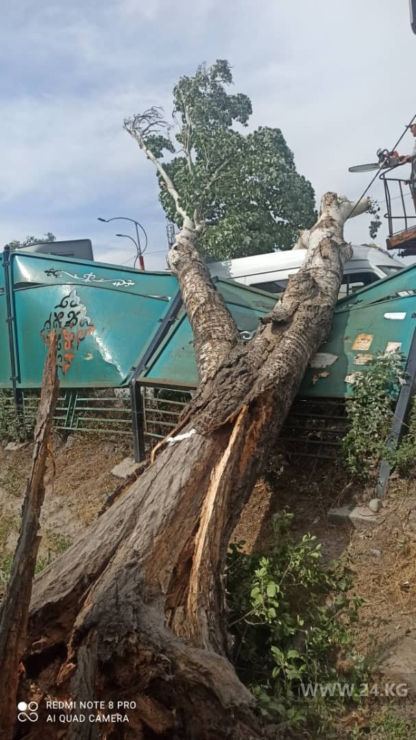 В Бишкеке на пересечении проспекта Жибек Жолу и улицы Фучика на маршрутку упало дерево. Об этом 24-kg.com сообщил очевидец происшествия.