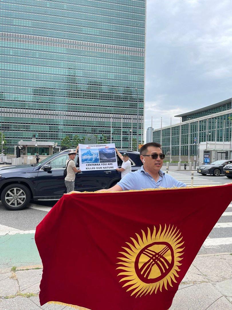 Кыргызстанцы в Нью-Йорке (США) вышли на митинг к зданию ООН. Об этом 24-kg.com сообщил читатель.